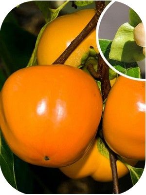 Hana Fuyu: Középnagy, lapos, pogácsaszerűen lapított, sötét narancs színű, mézédesre érő gyümölcsű, lassú növekedésű, viszonylag kis termetű fát nevelő fajta.