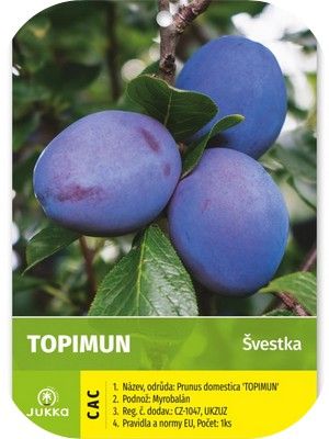 Egy új fajta, amely teljesen ellenáll a Sharka vírusnak. Jól fejlődik a melegebb területeken, termékeny talajú helyeken. Fiatalkorban erőteljes növekedés jellemzi, majd teljes termékenységben gyenge a növekedés. A Topimun szilva termése nagyobb, hosszúkás. Húsa sárgászöld, kemény, nagyon lédús, édes, részben a maghoz tapad. Szeptemberben érik. A fagyállósága magas.