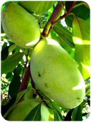 Nagy méretű sárga-zöld színű termése október elején érik. Kevés magot tartalmazó, sárga húsú termése igen ízletes. Éretten puha, jellegzetes illata van. Az íze a tejsodóra emlékeztet.