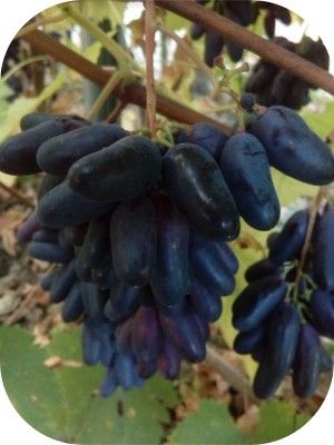 A fürtök közepesek és nagyok, kúposak, lazák, körülbelül 350-400 g tömegűek, de vannak 1 kg-ot is elérők is. A bogyók egyedi pálcika alakúak, keskeny és ívelt végei sötétkék és fekete színűek. Húsa meglehetősen feszes, ropogós, jellegzetes muskotály ízű és fajta aromájú - nagyon finom. Közepes növekedési erejű és nagy termőképességű fajta, ami a legfontosabb, nagyon jól fásodik.