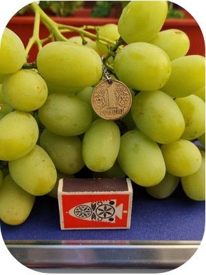 A fürtje nagy, tömege 700-1200 gramm. Nagy bogyók, 16-18 gramm, legfeljebb 25 gramm. A bogyók oválisak, fehérek vagy sárgászöldek. A hús vastag, ropogós, magas péppel (18-20%). Íze harmonikus. Teljesen éretten a bogyók enyhén fanyar ízűek, ami csak pikantériát ad az íznek. Gyümölcsösség - 2 grn oldalanként.